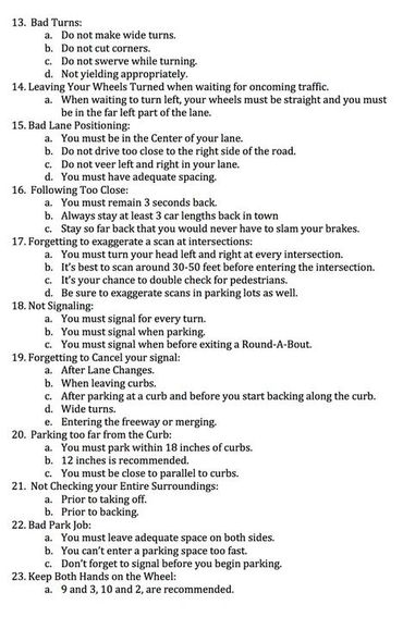 It is extremely rare for our students to make 15 errors on the DMV Drive Test, In Fact, The Most Common way Applicants fail their Drive Test is an Automatic Fail. Below is a list of ways you could Fail your test.